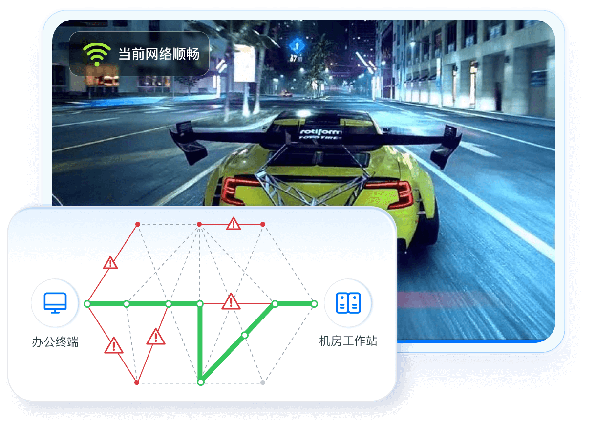 使用更优的SD-WAN网络,智能选择最优网络路径,避开高峰拥堵,大幅提升远程连接的稳定性、速度和抗丢包能力。