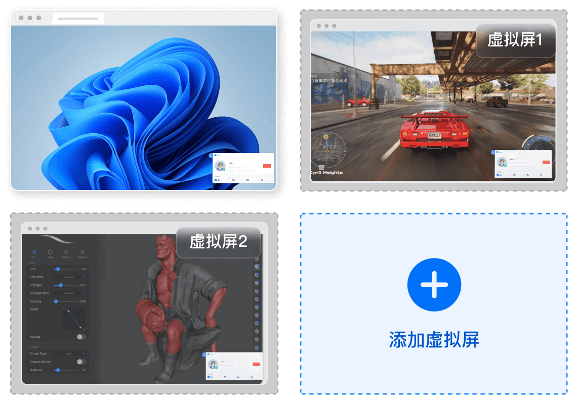 专为服务器/MiniPC打造。允许在被控端设备上创建多个「虚拟显示器」。即使被控端(如服务器)本身没有连接任何物理显示器,也能正常进行远程控制和多任务处理。